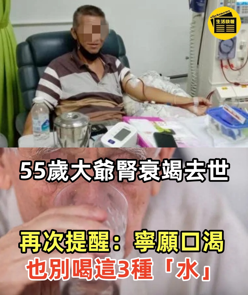 55歲大爺腎衰竭去世,再次提醒:寧願口渴,也別喝這3種「水」