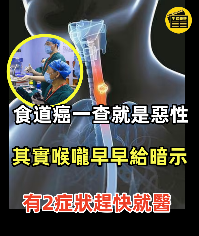 食道癌一查就是惡性,其實喉嚨早早給暗示有2症狀趕快就醫