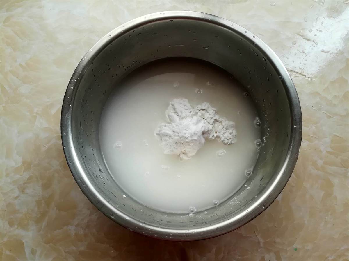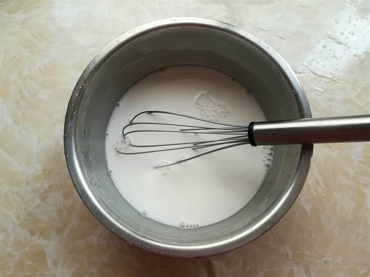 第三步:腸粉面漿再次用手動打蛋器攪拌均勻。