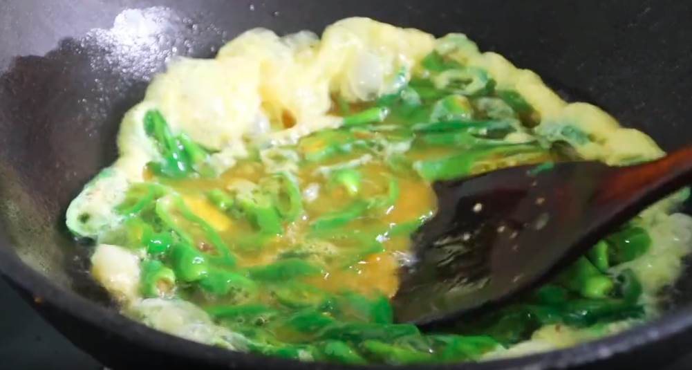 3.炒雞蛋的時候可以多放點油,這樣不容易粘鍋,而且這道菜是素材,本身就沒有多少油水。