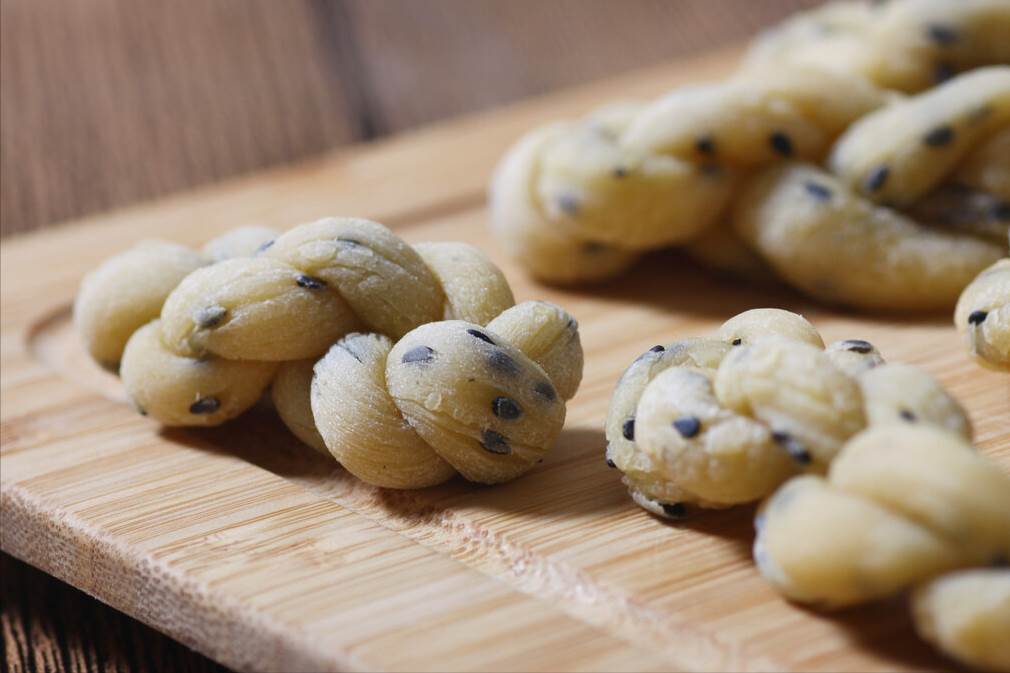 這樣把所有的面團,都整理成麻花狀,就可以啦。