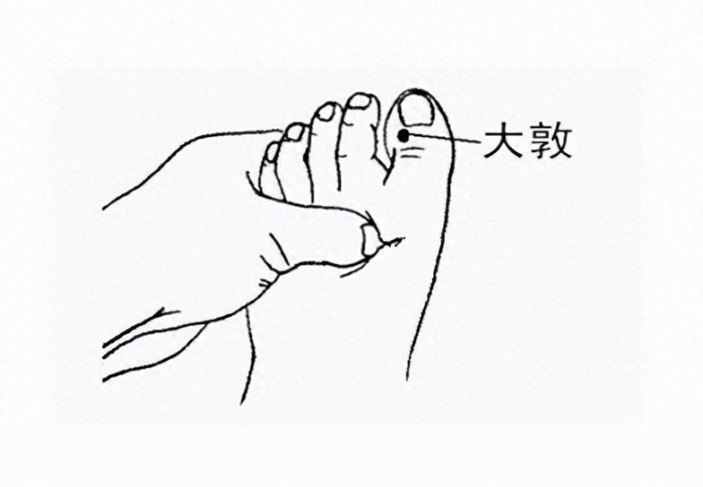 大敦穴:肝經的第一個穴位,在大腳趾內側的趾甲縫旁邊。