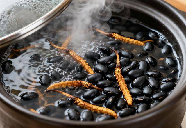 冬蟲夏草性溫、補腎益精,搭配黑豆能增強身體根本。