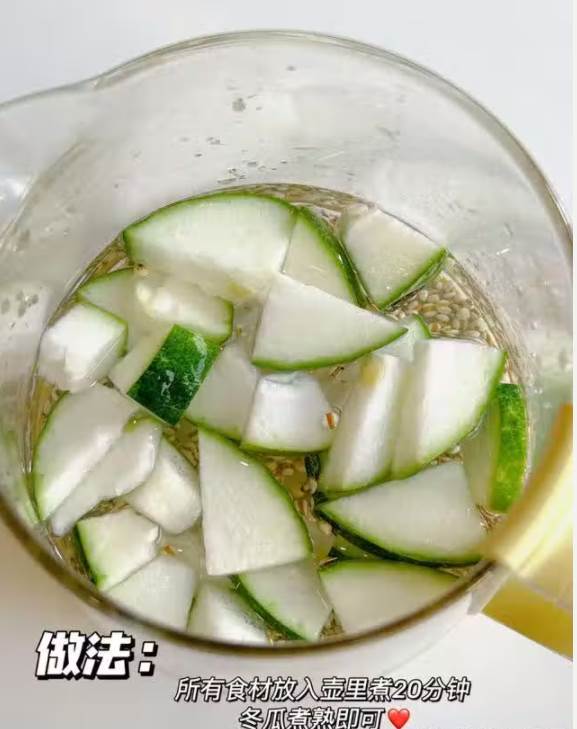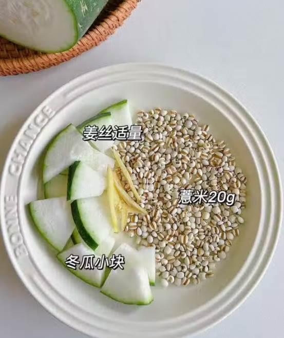 同事們看到我的變化,下午茶都不喝了,人手一杯冬瓜薏米水,太清爽了。食材有薏米20克,冬瓜一小塊,薑絲適量。