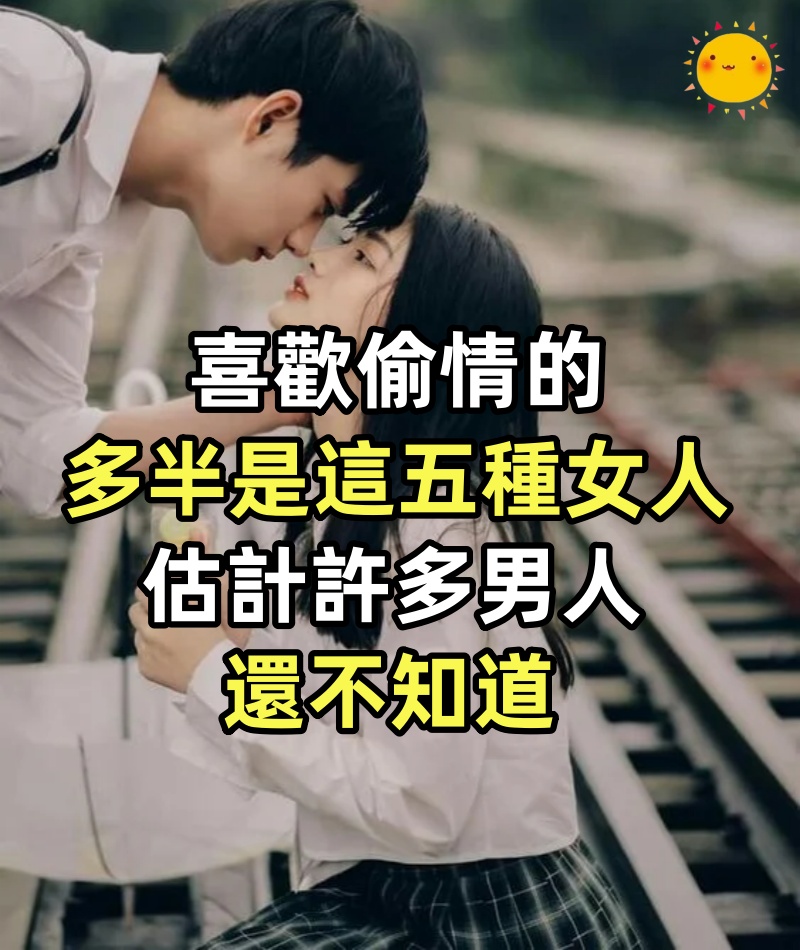 喜歡偷情的多半是這五種女人,估計許多男人還不知道 易陷入偷情的五類女人,許多男人渾然不知 在複雜的情感世界中,部分女性容易偏離忠誠的軌道,陷入偷情的漩渦。 以下五類女人尤其需要警惕。 第一類是情感匱乏型。 這類女性在現有感情里長
