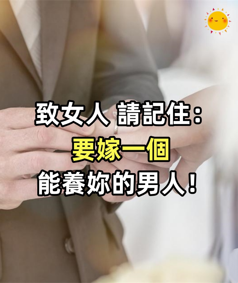 致女人,請記住:要嫁一個能「養」妳的男人!