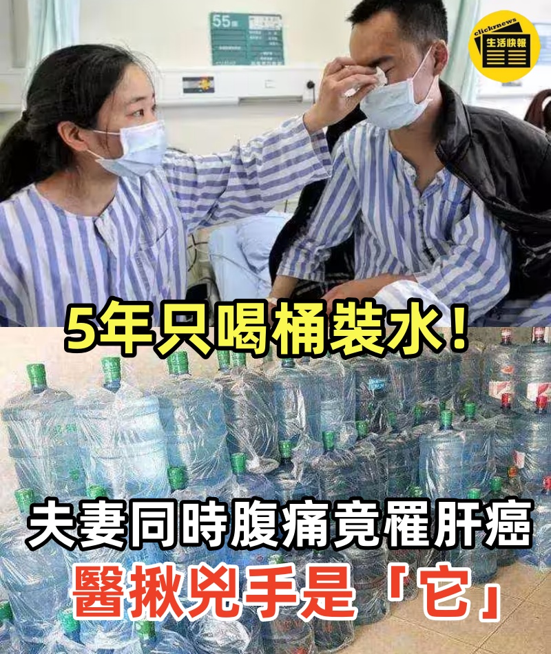 1/4 5年只喝桶裝水!30歲夫妻「同時腹痛」竟罹肝癌…醫揪兇手是「它」全網傻眼:我家也在喝 廣告台詞「多喝水沒事,沒事多喝水」在提醒民眾想健康一定要喝水,水也是維持身體機能正常運作的重要元素之一,然而中國一對夫妻就算工作忙碌也不忘喝水,為了慎重起見還特別飲用「桶裝水」,結