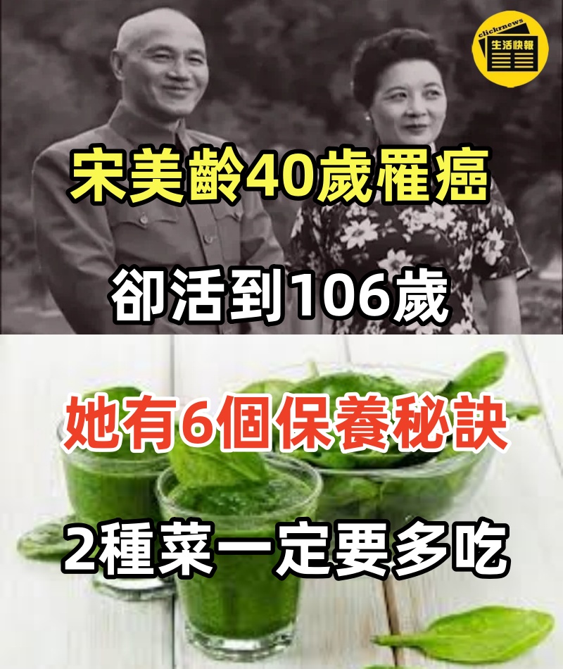 宋美齡40歲罹癌,卻活到106歲!她有6個保養秘訣,「2種菜」一定要多吃
