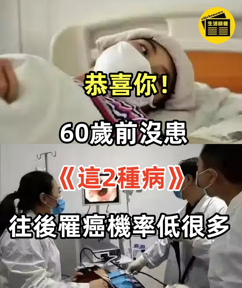恭喜你!若60歲前沒患《這2種病》往後罹癌機率低很多