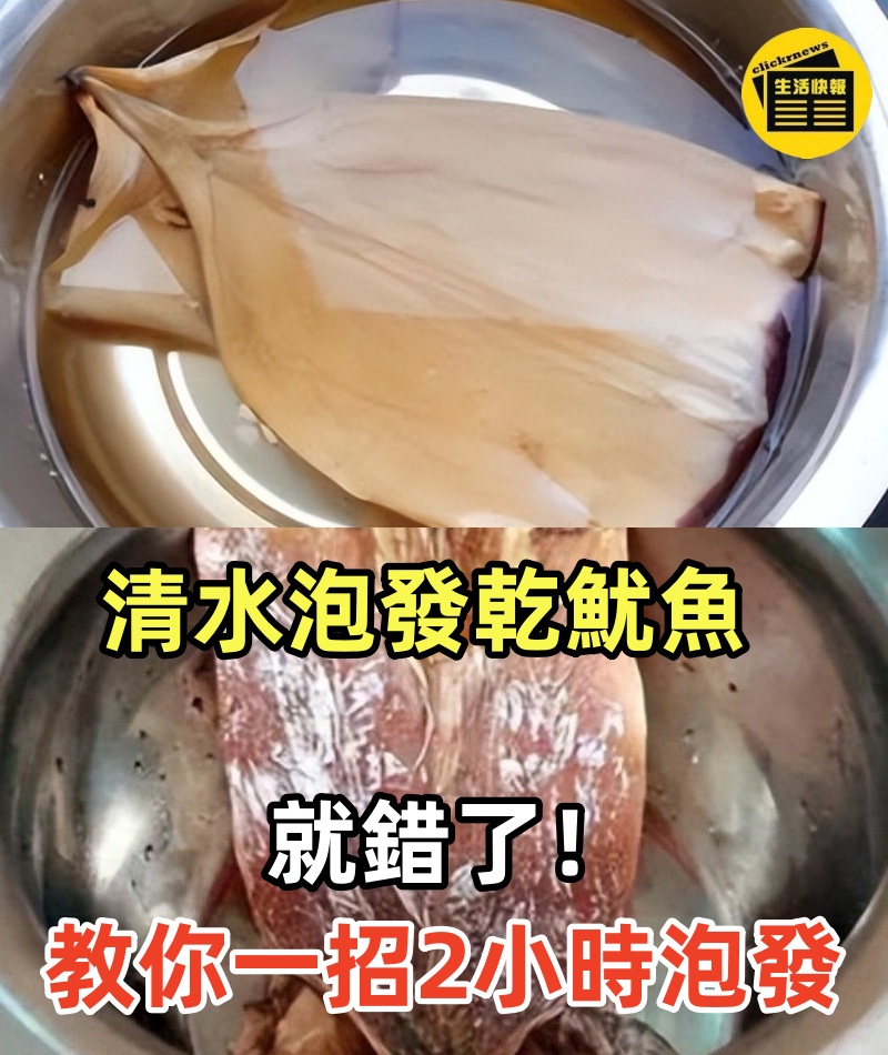 泡發乾魷魚時,只加清水就錯了, 20年大廚教你一招,2小時泡發5倍大