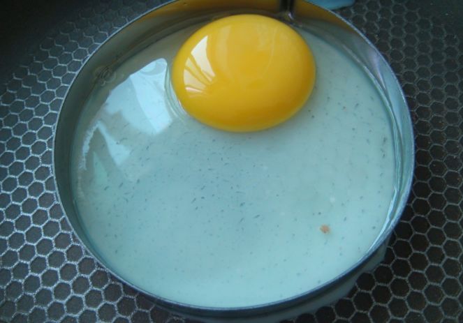 將此筒放在煎鍋上,將蛋打入罐中,這樣圓溜光滑整齊的荷包蛋就煎成了。
