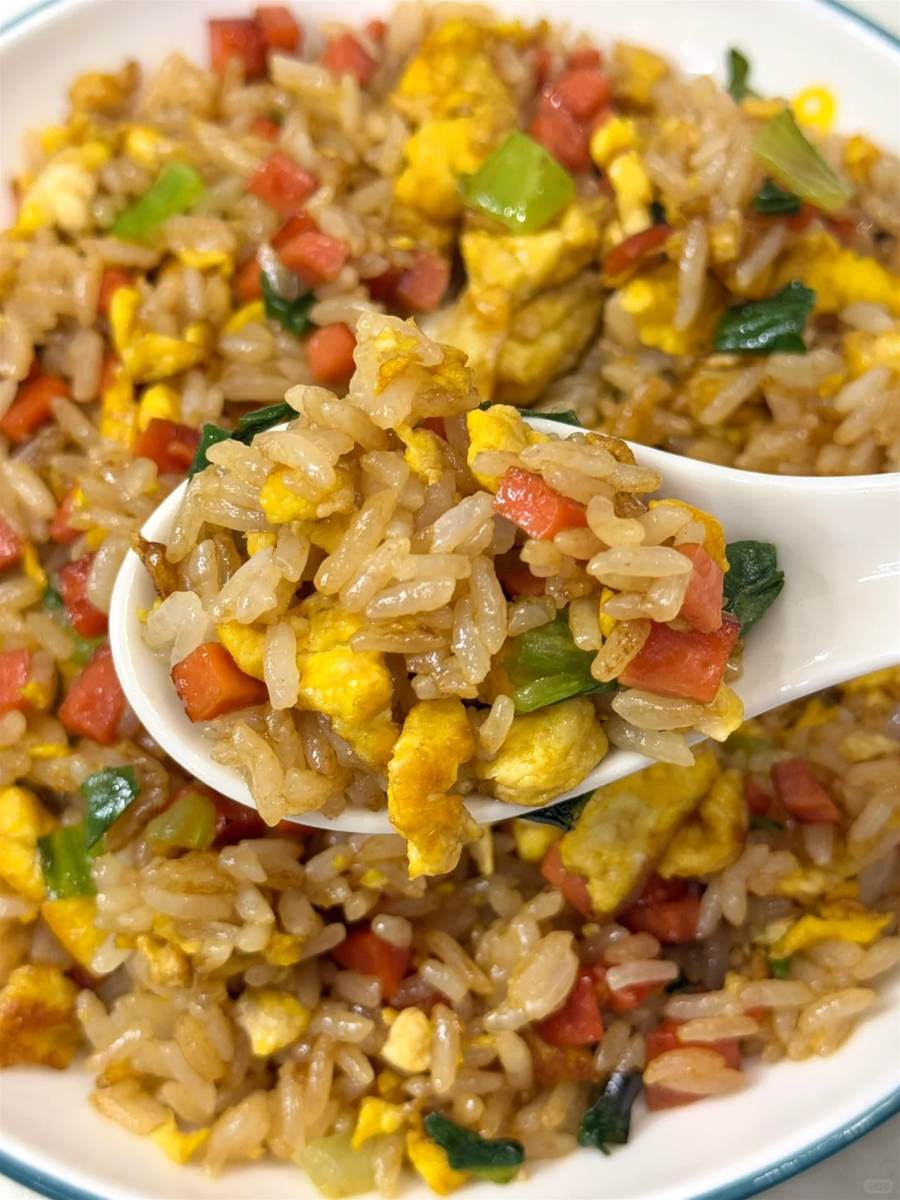 這樣炒出來的米飯,受熱均勻,不會粘在鍋底,更不會炒糊,每一粒都干爽分明,還帶著淡淡的焦香,越嚼越香。