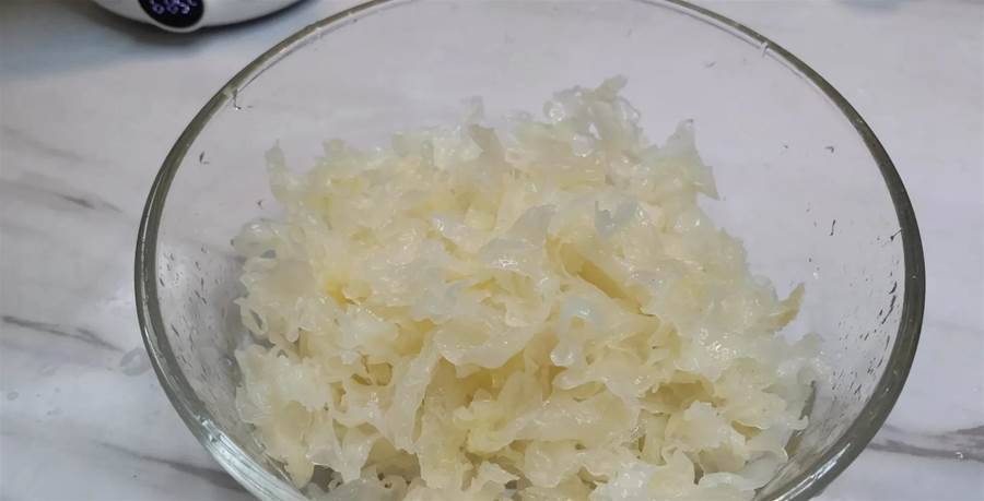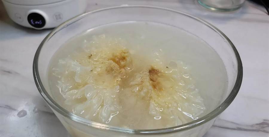 要想提高銀耳的出膠率,泡發的時間一定要充足,大約半個小時左右,這樣不僅出膠快。還能大大縮短燉煮的時間。泡發的時候盡量讓銀耳根部朝上,這樣能保證銀耳全部浸泡到水里。